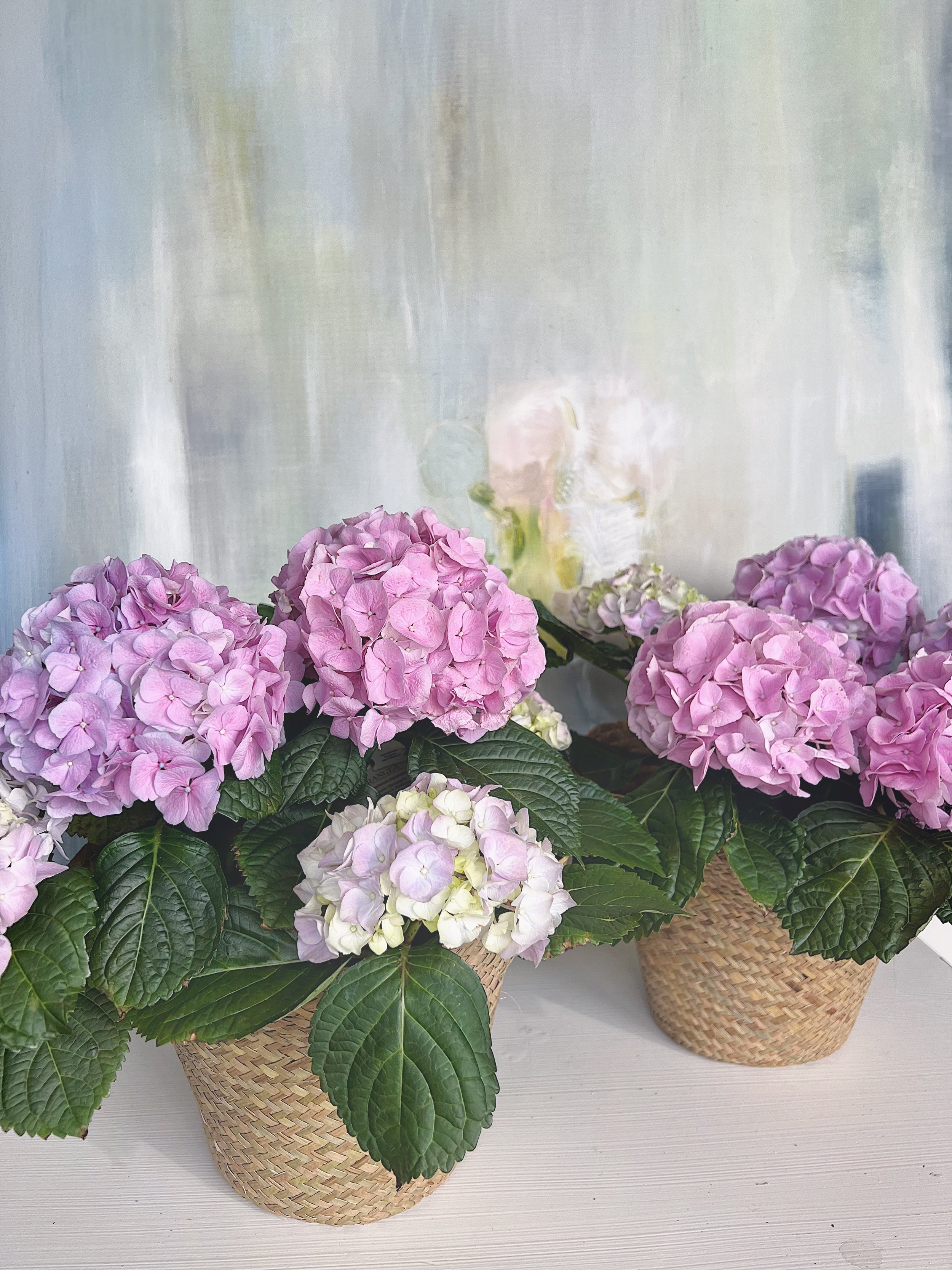 Beautiful Hydrangeas . . . a sure sign of spring and warmer weather! Plant color will vary upon availability. Potted in a 6” pot, with choice of white metal pot or ceramic container.